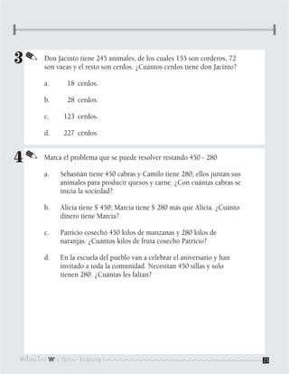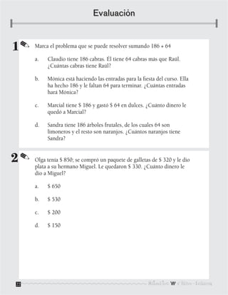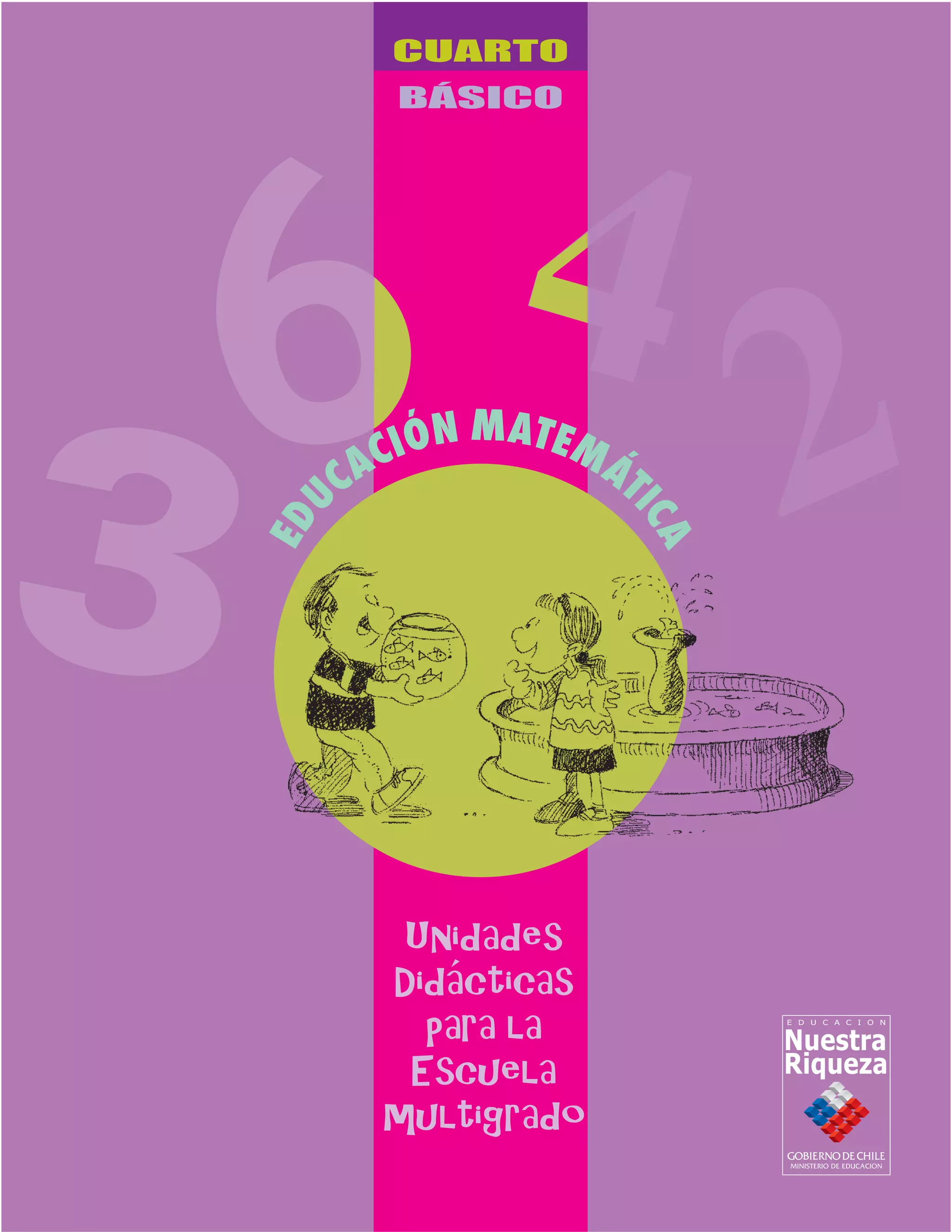 El documento presenta unidades didácticas para la enseñanza de matemáticas en 4o básico para escuelas multigrado. Fue desarrollado por el Ministerio de Educación de Chile y contiene información sobre los autores, editores, diseñadores e ilustradores que participaron en su creación.