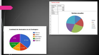 El documento describe diferentes tipos de gráficos, incluyendo gráficos circulares o de pastel y gráficos lineales. Un gráfico circular representa variables cualitativas asignando un sector del círculo a cada valor en proporción a su frecuencia. Un gráfico lineal representa cambios a lo largo del tiempo o una relación constante entre variables.