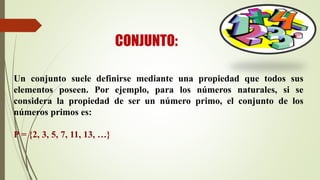 Este documento define conceptos matemáticos básicos como conjuntos, operaciones con conjuntos, números reales, desigualdades, valor absoluto y desigualdades de valor absoluto. Explica que un conjunto se define por una propiedad común en sus elementos, y describe operaciones como unión, intersección, diferencia y producto cartesiano. También define números reales, desigualdades y cómo usar los signos de relación, y explica que el valor absoluto representa la distancia de un número a cero sin importar su signo.