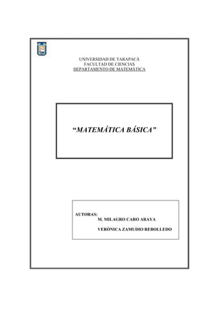 Este documento presenta un material de matemática básica creado para estudiantes de ingeniería. Incluye capítulos sobre geometría plana, trigonometría, la recta en el plano y desigualdades. El material contiene definiciones, teoremas, ejemplos y ejercicios resueltos para reforzar los conceptos matemáticos fundamentales necesarios para cursos como álgebra y cálculo. Fue desarrollado por dos académicas del Departamento de Matemática para mejorar el nivel de entrada de