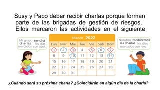 Según el calendario ¿Qué días reciben las charlas el grupo de Susy?