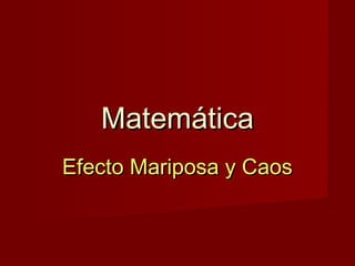 Este documento explica el concepto de efecto mariposa y caos en sistemas dinámicos. Brevemente: 1) Pequeños cambios en las condiciones iniciales de un sistema caótico pueden dar lugar a resultados muy diferentes. 2) El clima es un ejemplo de sistema caótico donde pequeñas variaciones pueden alterar significativamente las predicciones meteorológicas. 3) El efecto mariposa ilustra cómo cambios mínimos pueden desencadenar efectos amplificados a gran escala, como un aleteo de mariposa provocando un tornado