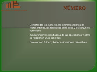 El documento describe las habilidades y conceptos fundamentales de las matemáticas, incluyendo comprender números y operaciones, patrones y álgebra, geometría, medición, estadística, probabilidad, resolución de problemas, razonamiento y comunicación matemática.