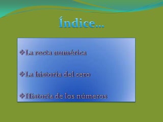 Este documento resume la historia de los sistemas de numeración utilizados por diferentes civilizaciones antiguas como los babilonios, egipcios, griegos, romanos, mayas, hindúes e introduce el sistema de numeración posicional actual. Explica que los babilonios desarrollaron el primer sistema posicional y los hindúes fueron los primeros en incluir el cero. Finalmente, describe brevemente los símbolos del sistema de numeración europeo actual.
