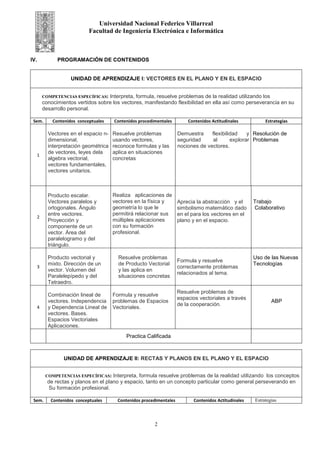 Este sílabo describe una asignatura de Matemática Básica que se impartirá en la Universidad Nacional Federico Villarreal. La asignatura se centra en temas como vectores, geometría analítica, rectas, planos y sistemas de coordenadas. La asignatura tiene una carga de 3 créditos y se impartirá durante el primer semestre de 2015.