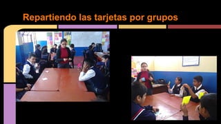 La profesora Rosario Guillén y la asistente Mercedes Espinoza enseñaron conceptos matemáticos a los estudiantes, quienes trabajaron en equipos para factorizar ecuaciones mientras recibían tarjetas con instrucciones. Luego evaluaron sus resultados.