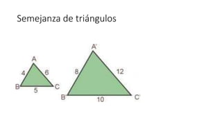 Este documento trata sobre la semejanza de triángulos en Matemáticas II, incluyendo los criterios de semejanza, el teorema de tales y el teorema de Pitágoras.