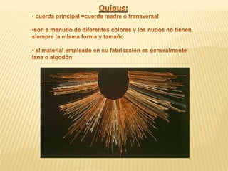 El resumen describe el ábaco incaico llamado Yupana, que se usaba para contar en el imperio inca. La Yupana tenía columnas de derecha a izquierda que representaban órdenes numéricos en el sistema decimal, desde unidades hasta centenas de mil. El cero se indicaba con un espacio vacío. El documento también anima al lector a crear su propia versión de un quipu o Yupana.