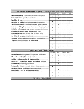 Este documento evalúa el material multimedia "Amejor", un sitio web sobre matemáticas. Según la evaluación, el sitio ofrece lecturas sobre temas y autores matemáticos así como ejercicios prácticos. Sin embargo, podría mejorarse incluyendo más actividades didácticas en lugar de tantas lecturas para evitar que los usuarios se aburran. En general, el sitio se considera bien organizado y con un alto potencial didáctico a pesar de necesitar más actividades interactivas.