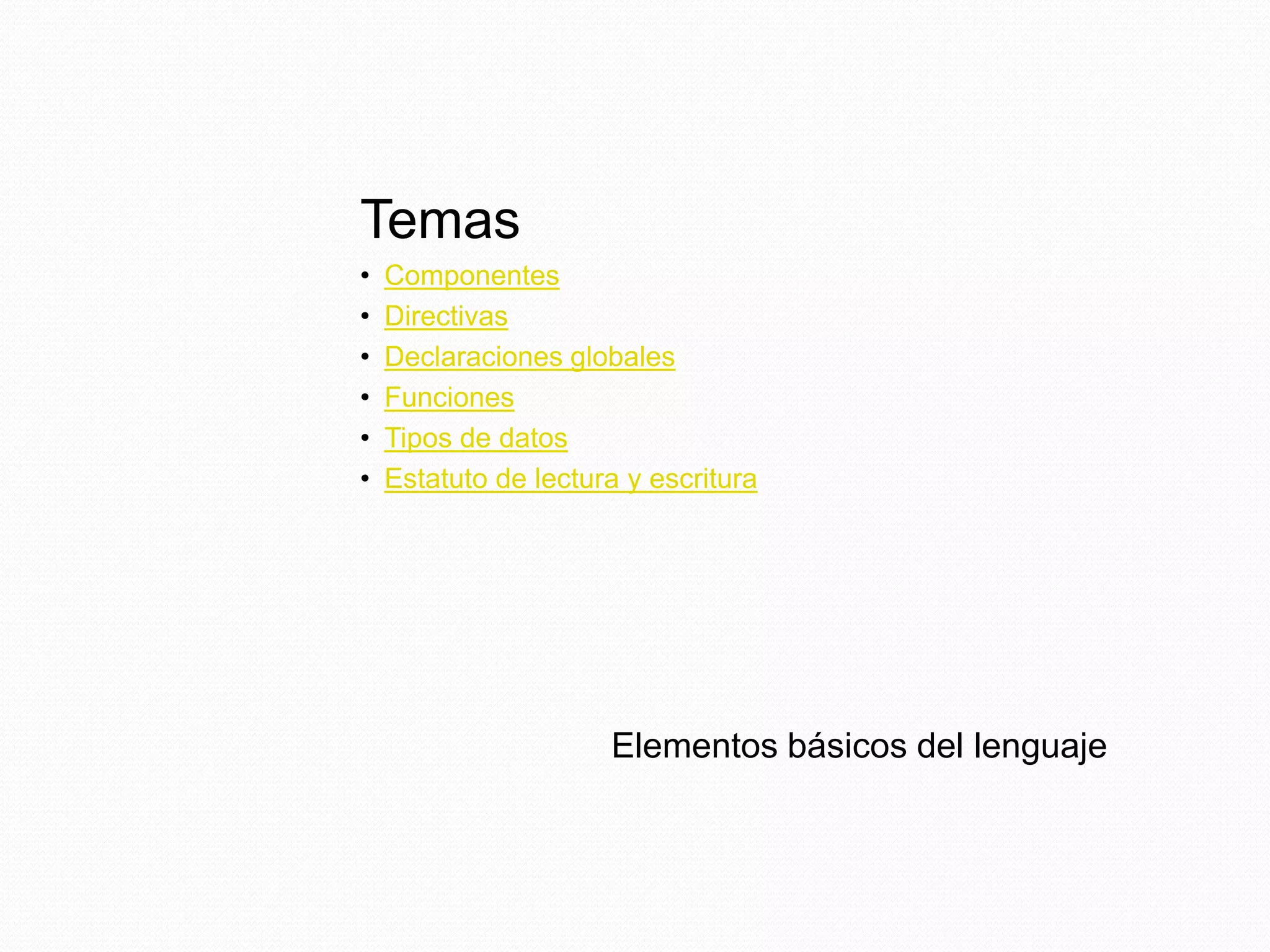 Este documento describe los elementos básicos del lenguaje C++, incluyendo componentes como funciones, directivas, declaraciones globales; también describe tipos de datos, estatutos de lectura y escritura, y comentarios. Explica que un programa C++ está compuesto de funciones, directivas de preprocesamiento, declaraciones globales, la función principal main, y funciones definidas por el usuario. Finalmente, detalla los diferentes tipos de datos como enteros, flotantes y caracteres que maneja C++.