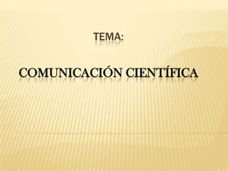 La comunicación científica es importante para compartir información y avances. El documento introduce el tema de la comunicación científica y su propósito de analizar sus características, importancia y proceso. Alienta a los lectores a reflexionar sobre cómo sería el mundo sin comunicación y les pide identificar aspectos positivos, negativos e interesantes de la comunicación científica.
