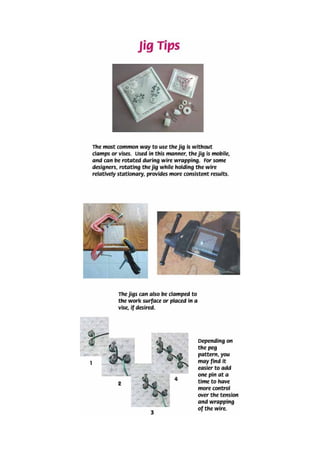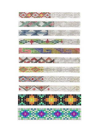 Este documento proporciona información sobre diferentes materiales y técnicas para hacer enfilados, incluyendo hilos, perlas, fornituras y herramientas. Describe varios tipos de hilos como poliéster, nylon y alambre, así como diferentes formas y colores de perlas. También explica técnicas básicas como enfilado simple, enfilado cruzado y enfilado múltiple, y cómo hacer formas como flores, triángulos, círculos y cuadrados. El documento incluye consejos y enlaces