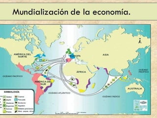 Este documento describe los cambios económicos en Europa durante el siglo XVI, incluyendo el crecimiento económico impulsado por mejoras en la agricultura, el comercio y la estabilidad social, así como la llegada de grandes cantidades de plata y oro de las Américas. Esto trajo más moneda a Europa y estimuló inicialmente la producción, pero también generó inflación a largo plazo al haber demasiado dinero en circulación. El documento analiza las causas y consecuencias de estos cambios económicos durante la Edad Modern