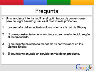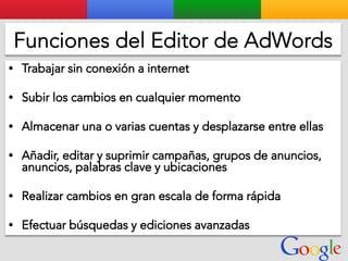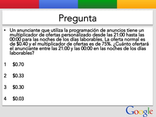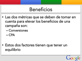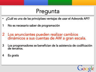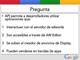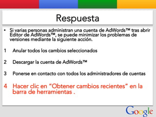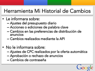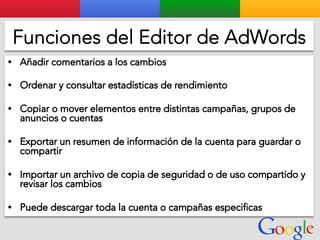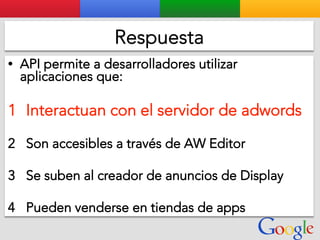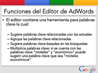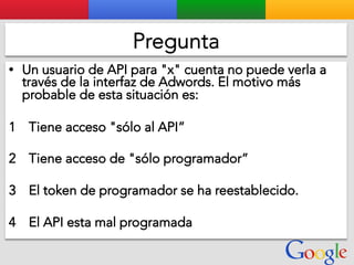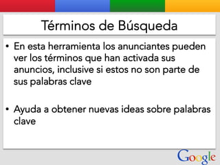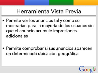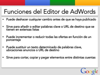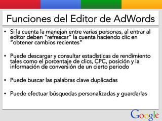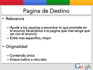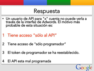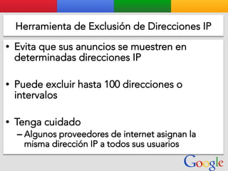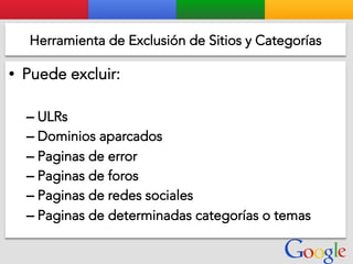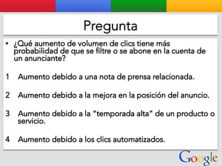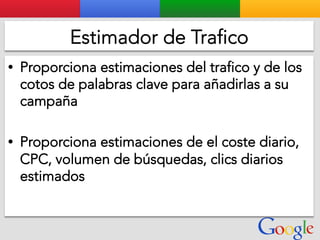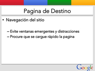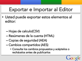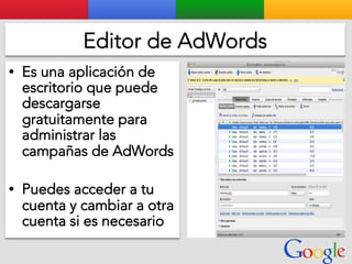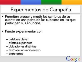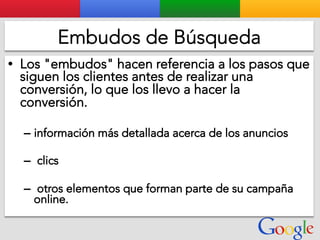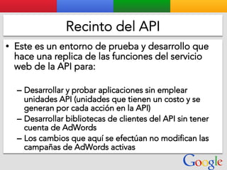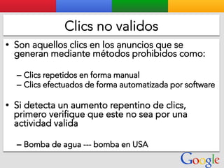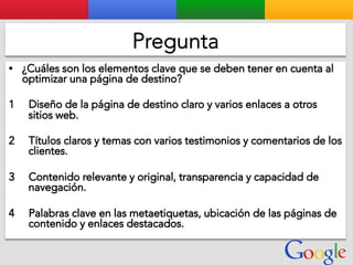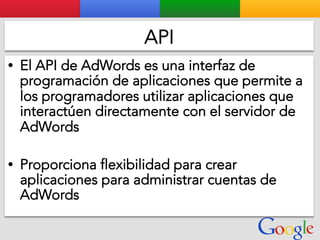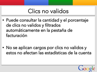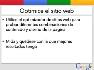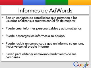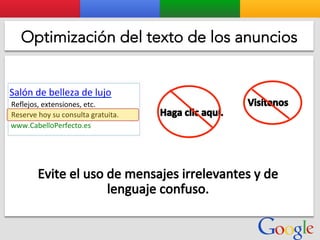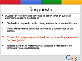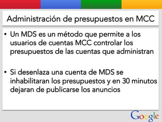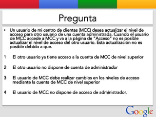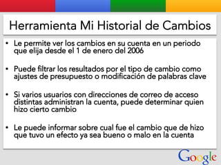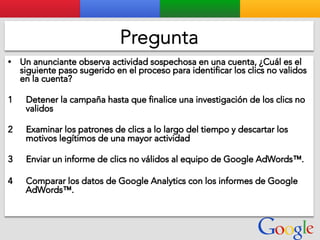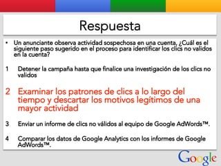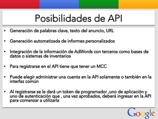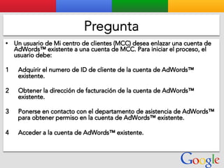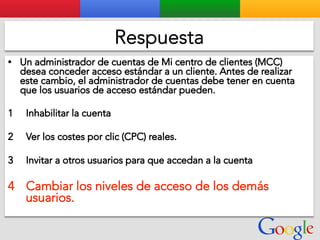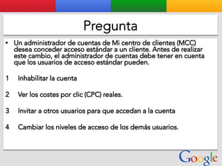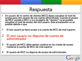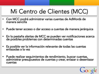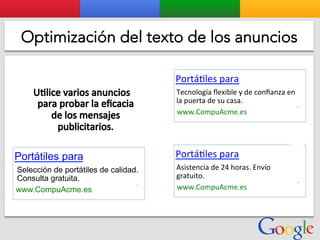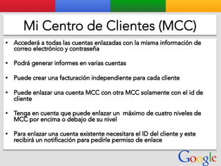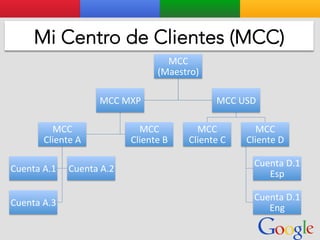 Este documento presenta la estructura de cuentas de Google para varios clientes (Clientes A, B, C, D) y sus respectivas cuentas subordinadas. También incluye ejemplos de sitios web para un salón de belleza y portátiles para empresas con sus respectivas descripciones y enlaces.