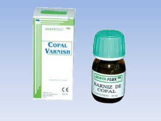 Este documento describe varios materiales de obturación comúnmente utilizados en odontología, incluyendo hidróxido de calcio, óxido de zinc con eugenol, fosfato de zinc, policarboxilato, cemento quirúrgico e ionómero de vidrio. Explica sus composiciones químicas, propiedades, usos y procedimientos de manipulación. El objetivo es que los estudiantes conozcan los diferentes tipos de materiales de obturación y cómo usarlos correctamente.