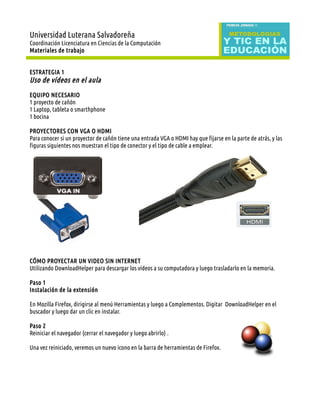 El documento detalla estrategias educativas para conectar con la generación del milenio a través del uso de tecnología en el aula, como vídeos y presentaciones efectivas. Proporciona instrucciones sobre cómo descargar vídeos sin conexión, así como recomendaciones para crear presentaciones convincentes y permitir que los estudiantes produzcan sus propios vídeos. En resumen, el enfoque está en crear un aprendizaje interactivo y creativo mediante el uso de recursos digitales.