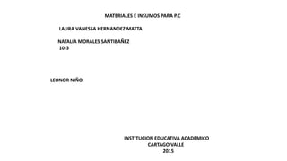 Este documento proporciona una lista y breve descripción de varios materiales e insumos comúnmente utilizados para arreglar y mantener computadoras personales, incluyendo pulseras antiestáticas, pinzas, llaves de copa y destornilladores, cargadores, discos duros portátiles, linternas, sopladores, brochas, limpiadores y lubricantes.