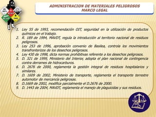 El documento destaca la importancia de tomar medidas de prevención y control durante el transporte de sustancias y residuos peligrosos para proteger la salud de las personas y el ambiente. Se debe minimizar los riesgos y garantizar la seguridad de acuerdo con las normas técnicas aplicables.
