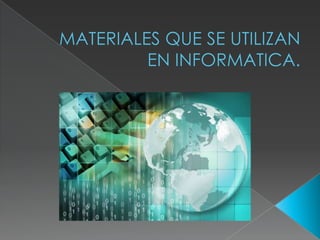 El documento resume las características de varios materiales, incluyendo la fibra óptica que transmite datos a través de pulsos de luz, los semiconductores cuyas propiedades dependen de factores externos, y los superconductores que exhiben resistencia cero por debajo de una temperatura crítica. También describe los polímeros que se usan para hacer plásticos, los cerámicos como la arcilla, y los vidrios de silicato que se hacen más resistentes con otros componentes. Por último, explica que las aleaciones de aluminio se