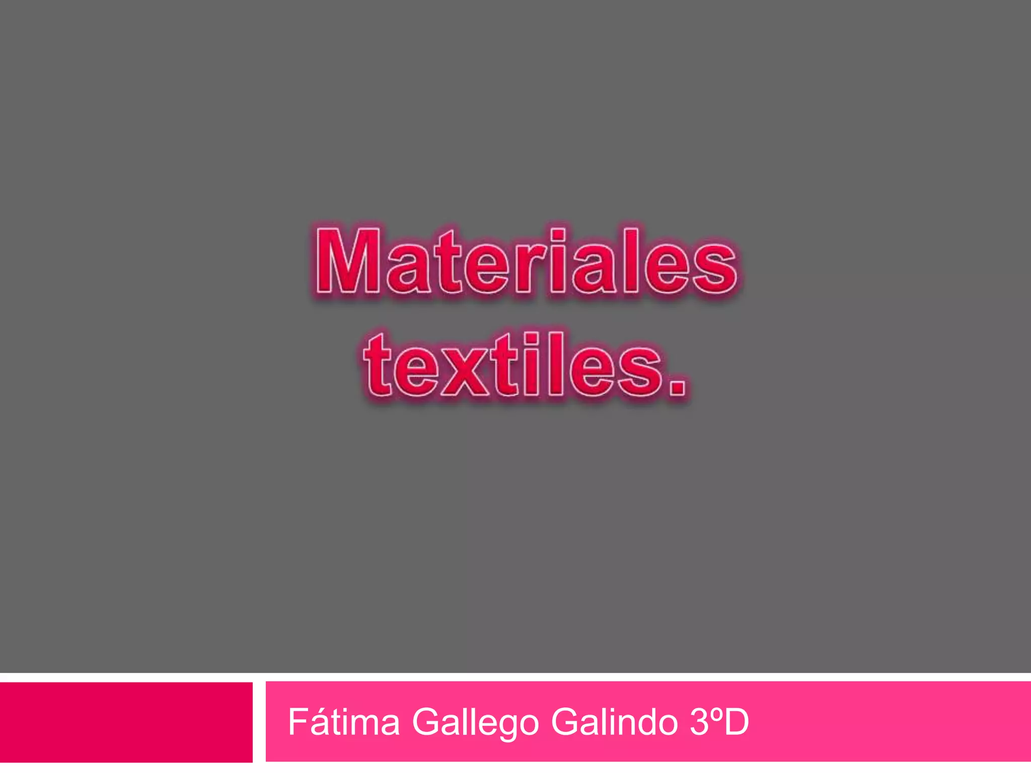 Este documento describe los diferentes tipos de materiales textiles, incluyendo fibras naturales como el algodón, el lino y la lana extraídos de plantas, animales y minerales, así como fibras sintéticas como el nailon y el poliéster hechos de plásticos. Explica que las fibras se procesan para formar hilos que luego se entrecruzan para crear tejidos.