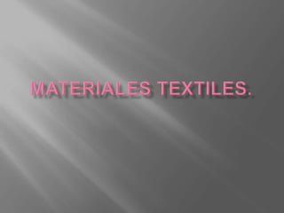 Este documento describe diferentes tipos de fibras que se utilizan para hacer hilos y tejidos. Las fibras pueden ser naturales, extraídas de plantas, animales o minerales como el algodón, lino, esparto, lana y seda, o sintéticas producidas artificialmente. Cada fibra natural tiene propiedades únicas como flexibilidad, resistencia a ácidos o aislamiento térmico.