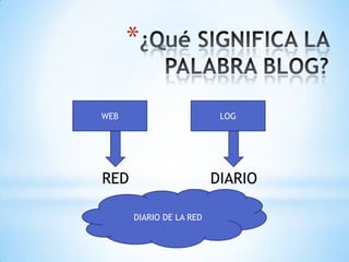 Este documento describe los blogs y su uso en educación. Explica que los blogs son diarios en línea que pueden ser personales o temáticos. Detalla cómo crear blogs gratuitos a través de plataformas como Blogger o Wordpress. Finalmente, destaca los beneficios educativos de los blogs, como permitir a los estudiantes publicar material, mejorar contenidos y comunicarse.