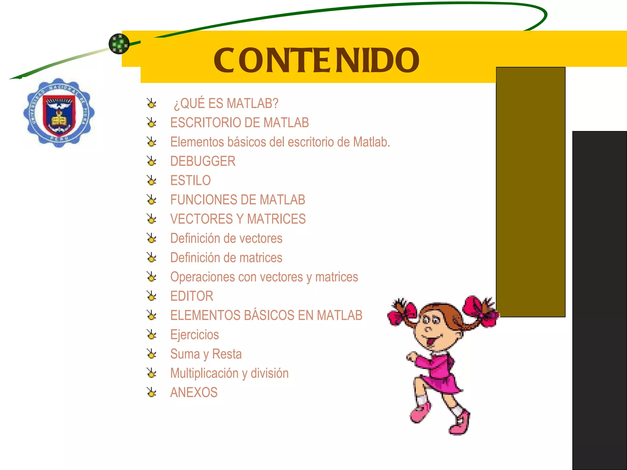 Matlab es un software para el cálculo numérico y el procesamiento de datos que permite realizar operaciones con vectores y matrices. Ofrece funciones matemáticas, gráficos, herramientas de programación y un entorno de desarrollo integrado. El documento explica los elementos básicos de la interfaz de Matlab, como la ventana de comandos y el editor, y describe conceptos como vectores, matrices, funciones y operaciones matemáticas elementales que se pueden realizar con estos objetos.
