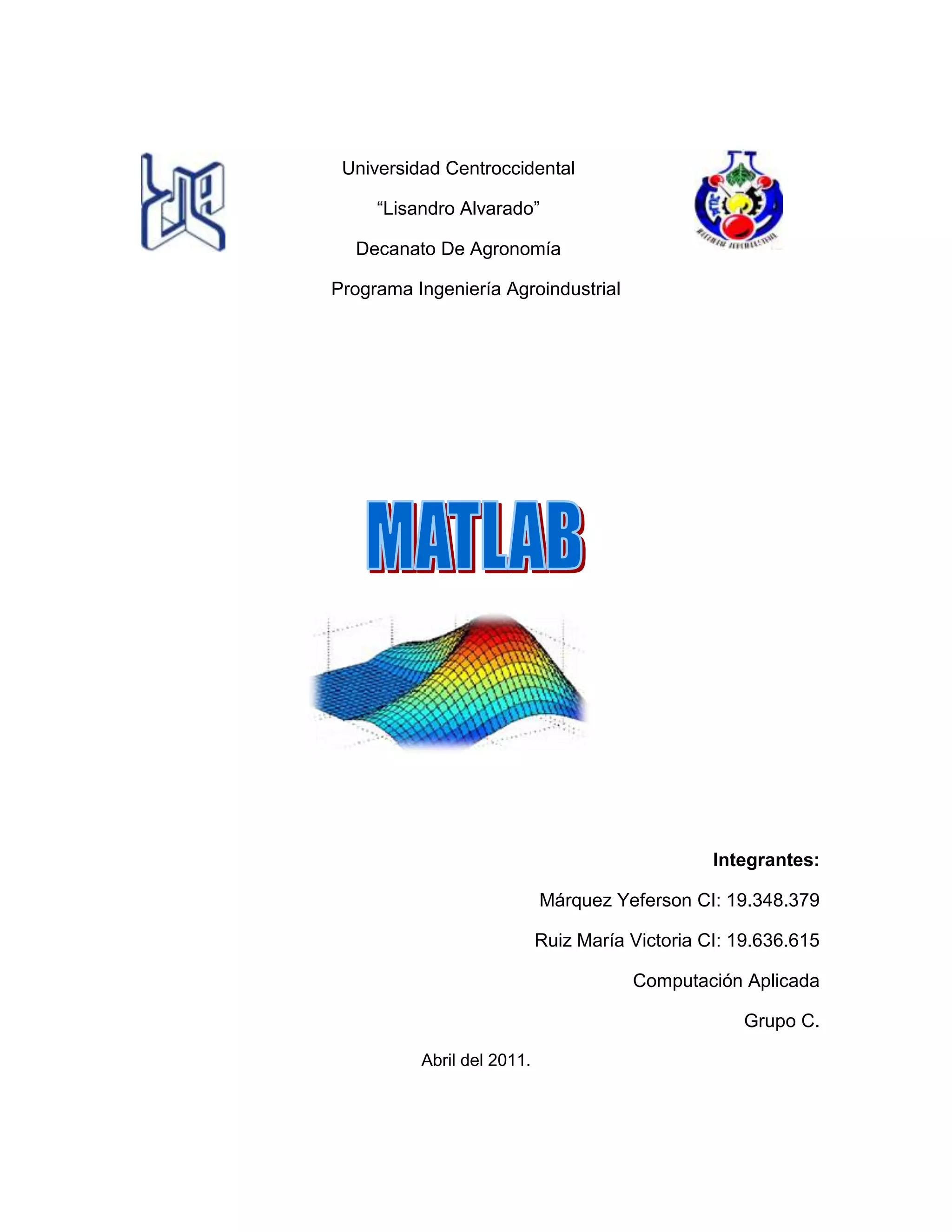 1) MATLAB es un software matemático que permite realizar cálculos numéricos, procesamiento de señales y gráficas mediante el uso de matrices. 2) MATLAB permite realizar operaciones matemáticas, lógicas y relacionales sobre matrices y vectores de forma interactiva. 3) El documento explica cómo funciona MATLAB, incluyendo la creación y modificación de matrices, y diferentes tipos de operaciones que se pueden realizar con ellas.