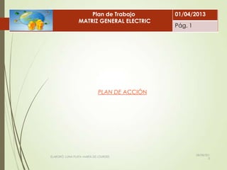 El documento presenta una investigación sobre la matriz general de electric realizada por Luna Plata María de Lourdes. Explica que la matriz fue desarrollada por la consultora McKinsey & Co. para General Electric y toma en cuenta factores como el tamaño del mercado, crecimiento, margen de utilidades e intensidad de la competencia para evaluar el atractivo de una industria. Además, utiliza las unidades estratégicas de negocios de una empresa para clasificarlas según su fortaleza y el atractivo de su industria en cuatro cuadrantes.