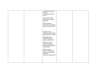 Este documento presenta conceptos y principios relacionados con la salud ocupacional y la prevención de riesgos laborales. Define términos como entorno laboral, normas y leyes, factores de riesgo, riesgos ocupacionales, prevención de riesgos, riesgo ergonómico y psicosocial. También describe conocimientos y procesos como fichas antropométricas, cargas de trabajo, bienestar laboral y desempeño laboral. El objetivo es que el individuo promueva su interacción saludable en context