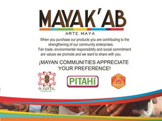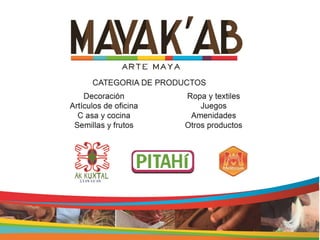 Este documento contiene una lista de productos artesanales de madera, cerámica, textiles y miel/jabones con sus respectivas descripciones y códigos. Se enumeran alhajeros, figuras de animales, cuadros, canastas, jicaras, jabones, mermeladas y suplementos alimenticios a base de miel.