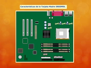Los diferentes tipos de tarjetas madre incluyen las tarjetas madre Full AT originales de IBM, las versiones más pequeñas Baby AT, las tarjetas madre LPX de bajo perfil para computadoras de escritorio delgadas, las tarjetas madre ATX más recientes que permiten mejor ventilación y actualización del procesador, y las tarjetas madre Micro ATX aún más pequeñas dirigidas al mercado de gama baja a media. El documento también menciona varios fabricantes populares de tarjetas madre como ASUS, Intel, MSI y ASRock.