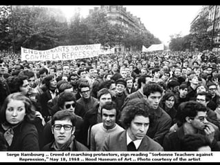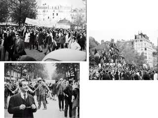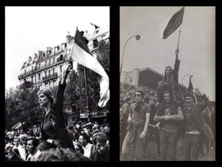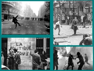 El mayo francés de 1968 fue una serie de movilizaciones estudiantiles y obreras en Francia, marcadas por un fuerte descontento hacia el régimen autoritario de Charles de Gaulle y las condiciones sociales y laborales. Las protestas inicialmente comenzaron como una reacción estudiantil contra la universidad tecnocrática, pero rápidamente se convirtieron en un movimiento masivo que involucró a millones de trabajadores, llevando al país al borde de una revolución social. A pesar de las concesiones del gobierno y los acuerdos firmados, el fervor revolucionario se desvaneció rápidamente, dejando una huella duradera en la historia social y política de Francia.