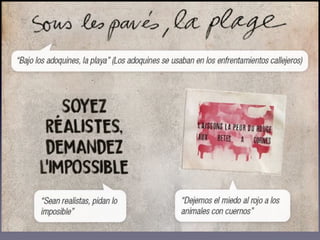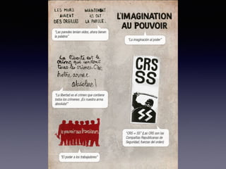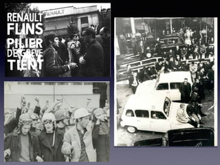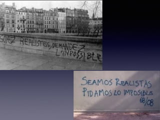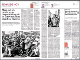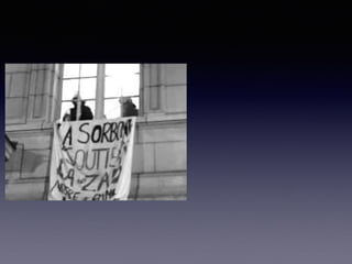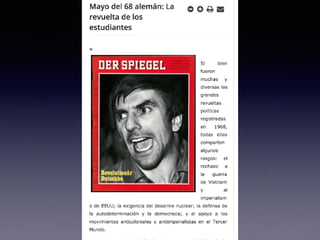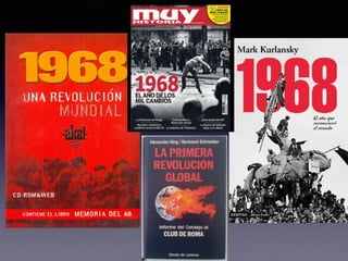 El documento resume eventos clave de 1968 como el asesinato de Martin Luther King Jr. y Robert Kennedy, las protestas estudiantiles de París de mayo, y la muerte del Che Guevara, todo lo cual reflejó el rechazo a la cultura dominante y los valores tradicionales de la época.