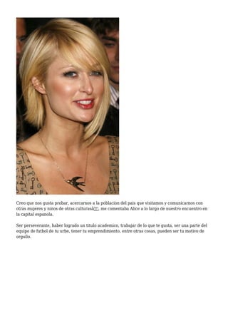 El documento explora la percepción de la belleza en mujeres, destacando que muchas de las consideradas hermosas han enfrentado sufrimientos en sus vidas. Se menciona la importancia de la imagen en el mercado audiovisual y cómo las mujeres peruanas poseen belleza única que las distingue. También se aborda la relación entre logros personales y el orgullo, además de proporcionar información sobre niveles de azúcar en la sangre.