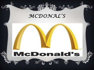 McDonald's abrió su primer restaurante en 1940 en California. Ray Kroc visitó este restaurante en 1955 y expandió la cadena por Estados Unidos y el mundo. Actualmente McDonald's tiene presencia en 119 países con más de 31,000 restaurantes que atienden a 58 millones de clientes diarios. La Big Mac fue creada en 1968 y se ha convertido en un ícono de la marca.