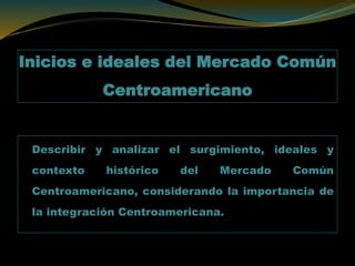 El Mercado Común Centroamericano (MCCA) se creó en 1960 para promover la integración económica entre Costa Rica, El Salvador, Guatemala, Honduras y Nicaragua. Los países se comprometieron a eliminar aranceles, establecer una política comercial común y crear un espacio económico integrado. Además, se creó el Banco Centroamericano de Integración Económica para financiar el desarrollo regional. Sin embargo, la ruptura del MCCA ocurrió en la década de 1970 debido a factores como la