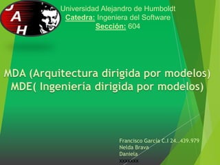 La lista contiene los nombres de Francisco García, Nelda Brava y Daniela como estudiantes de la sección 604 de Ingeniería de Software en la Universidad Alejandro de Humboldt.