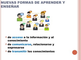 Este documento describe cómo las nuevas tecnologías pueden mejorar el proceso de enseñanza y aprendizaje. Explica que las TIC permiten nuevas formas de acceder a la información, comunicarse y transmitir conocimientos. También discute factores que influyen en el uso educativo de las TIC, como la formación de docentes y alumnos, y cuestiones a considerar al incorporar tecnología en la práctica docente, como seleccionar herramientas apropiadas y planificar su uso para obtener beneficios educativos significat