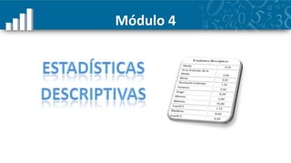 Este documento presenta una introducción a los estadísticos descriptivos fundamentales, incluyendo estadísticos de posición (como cuantiles y percentiles), medidas de tendencia central (como la media, mediana y moda), medidas de dispersión (como la desviación estándar y rango intercuartil), y estadísticos de forma (como la asimetría y curtosis). Explica las definiciones y cálculos de cada estadístico. El objetivo es proporcionar una clasificación y descripción general de los principales conceptos estad