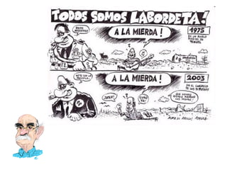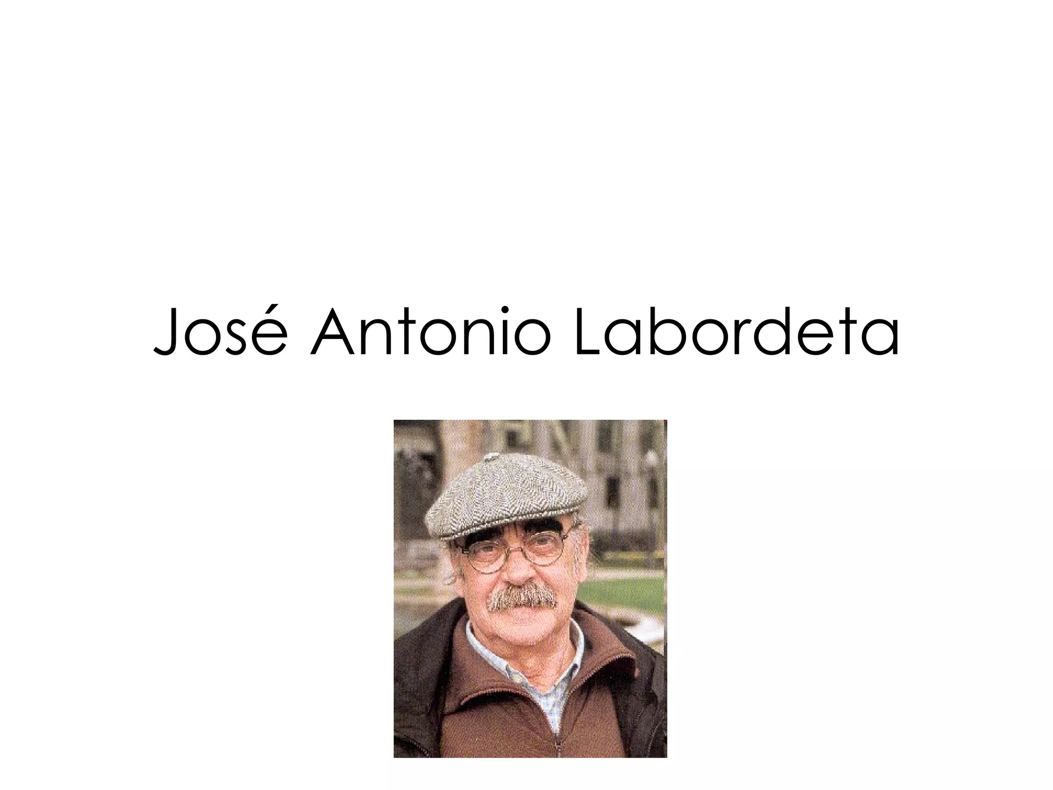 José Antonio Labordeta fue un poeta, cantautor, profesor y político aragonés que falleció en 2010 a la edad de 75 años. Se opuso a la dictadura franquista y marcó la transición a la democracia en Aragón. Algunas de sus obras más importantes incluyen Mitologías de mamá, Un país en la mochila y su última gran obra Regular, gracias a Dios. En su música reflejó su amor por Aragón a través de canciones como Canto a la Libertad y Somos. A pes