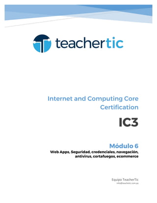 El documento habla sobre varios temas relacionados a la seguridad en internet y computadoras. Explica qué son las web apps, apps nativas, credenciales, navegación, antivirus, cortafuegos y notificaciones push. También discute la importancia de la seguridad informática y algunas consideraciones para elegir un buen antivirus.