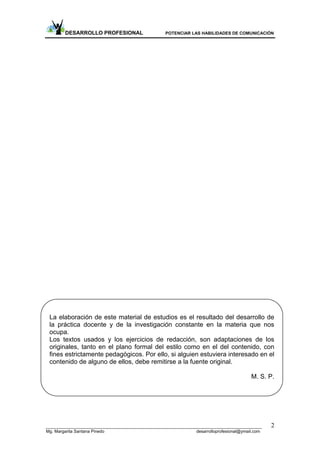 El documento aborda el desarrollo de habilidades de comunicación, resaltando su importancia en la interacción humana y profesional. Se exploran varios tipos de comunicación, incluyendo verbal, escrita, visual y gestual, así como sus códigos y procesos. Además, se enfatiza la necesidad de una comunicación efectiva para establecer relaciones interpersonales y lograr objetivos en diferentes contextos.