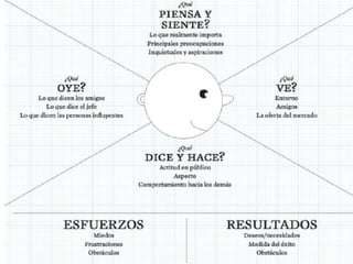 El documento describe las etapas del descubrimiento del cliente, la validación del cliente y la creación del cliente. Estas etapas incluyen caracterizar al cliente, entender su viaje, realizar entrevistas para identificar problemas y posibles soluciones, y validar hipótesis conversando directamente con los clientes. El objetivo es transformar hipótesis sobre los clientes en hechos comprobados para desarrollar un producto mínimo viable que satisfaga las necesidades de los clientes.