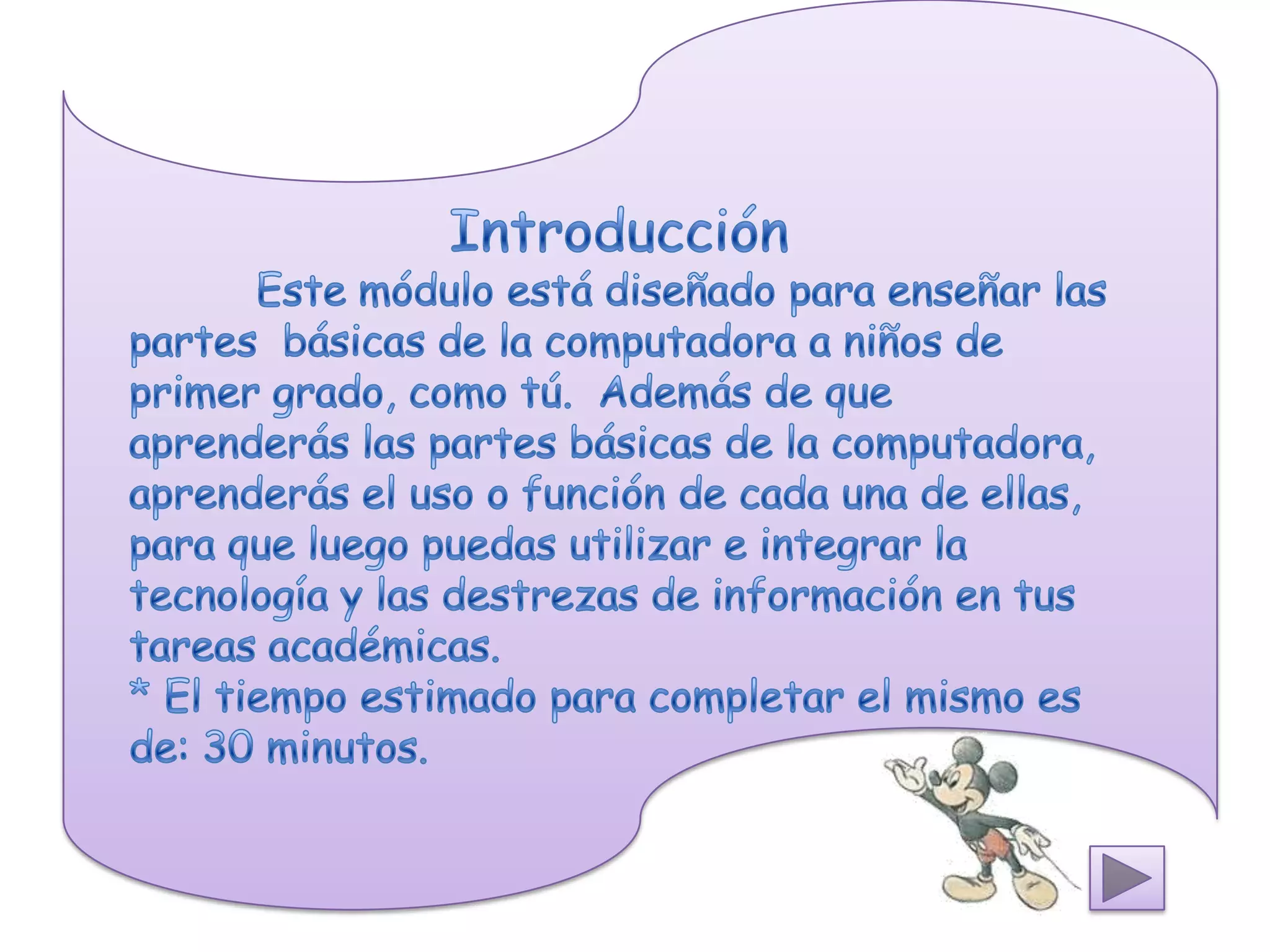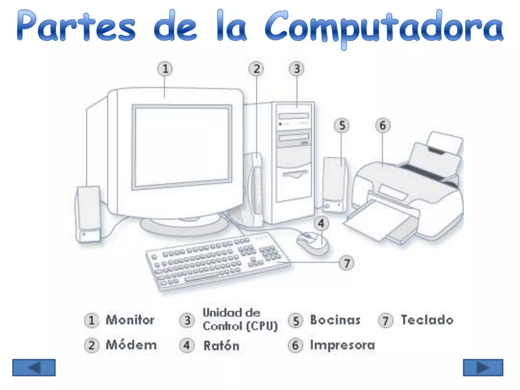 Este documento presenta una lección introductoria sobre las computadoras. Explica que una computadora es una máquina capaz de ejecutar instrucciones programadas y que tiene dos componentes principales: el software y el hardware. También describe las partes básicas de una computadora como el monitor, teclado, ratón, CPU e impresora y sus funciones respectivas. Finalmente, incluye preguntas de repaso para evaluar la comprensión del estudiante sobre los conceptos aprendidos.