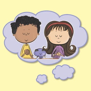 Este libro infantil enseña a los niños sobre la oración utilizando una oración de Jesús como ejemplo. Explica que la oración es una forma de hablar con Dios y que Dios siempre está dispuesto a escuchar y responder. Usa ilustraciones y preguntas para guiar a los niños a través de la oración de Jesús y reflexionar sobre su significado.