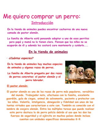 La familia de Alberto está considerando adoptar un cachorro de pastor alemán o labrador de una camada en una tienda de animales. El pastor alemán es una raza popular e inteligente que se usa comúnmente como perro policía debido a su valentía, lealtad y habilidades de salvamento. El labrador es la raza más popular del mundo y es conocido por su amabilidad y aptitud para el trabajo como perro de rescate o de la policía.