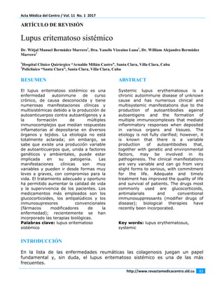 El lupus eritematoso sistémico es una enfermedad autoinmune crónica de causa desconocida que se manifiesta clínicamente de forma multisistémica debido a la producción de autoanticuerpos. Los factores genéticos y ambientales juegan un papel en su patogenia. Los síntomas son variables e incluyen compromiso de la piel, articulaciones, riñones, corazón y sistema nervioso. El tratamiento con glucocorticoides, antipalúdicos e inmunosupresores ha mejorado la calidad