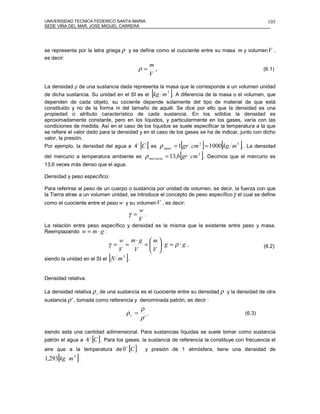 Este documento describe conceptos básicos de la mecánica de fluidos como la densidad, presión y estática de fluidos. Explica que los fluidos no tienen forma definida y se adaptan al recipiente que los contiene, y que los líquidos son incompresibles mientras que los gases sí pueden ser comprimidos. También define la densidad como la relación entre la masa y el volumen de una sustancia, y la presión como la fuerza repartida sobre una unidad de área. Finalmente, introduce conceptos clave de la estática de fluidos como el equilibrio