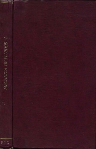 Este documento presenta un libro de texto sobre Mecánica de Fluidos 2 para estudiantes de ingeniería civil. El libro cubre temas como el flujo permanente y uniforme en canales, diseño de canales, energía específica, flujo permanente gradualmente variado, flujo permanente rápidamente variado, singularidades en canales, y estructuras hidráulicas en canales. El autor explica que el objetivo del libro es desarrollar el contenido de un curso semestral sobre este tema dictado en la Pontificia Universidad Católic